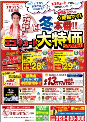 給湯器 交換・ガス給湯器 交換・電気温水器 交換・千葉エコキュート交換の専門店「チカラもち木更津店」です!