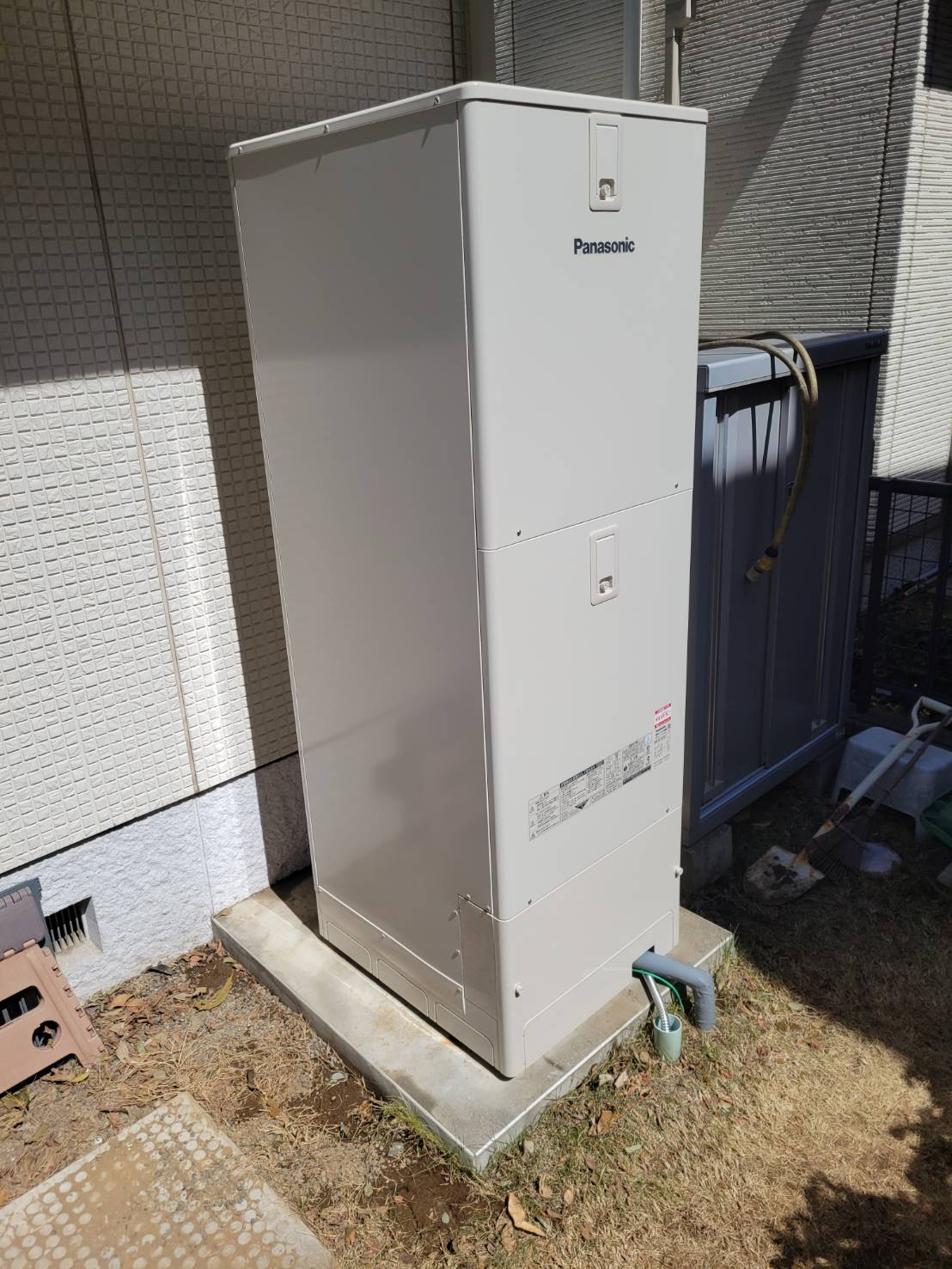 | 商品詳細 | 【施工前】 ナショナル フルオート 370L 電気温水器 貯湯ユニット:DH-37G3QUB ヒートポンプユニット:なし 【施工後】 パナソニック フルオート 370L エコキュート 貯湯ユニット:HE-S37LQS ヒートポンプユニット:HE-PS45L |