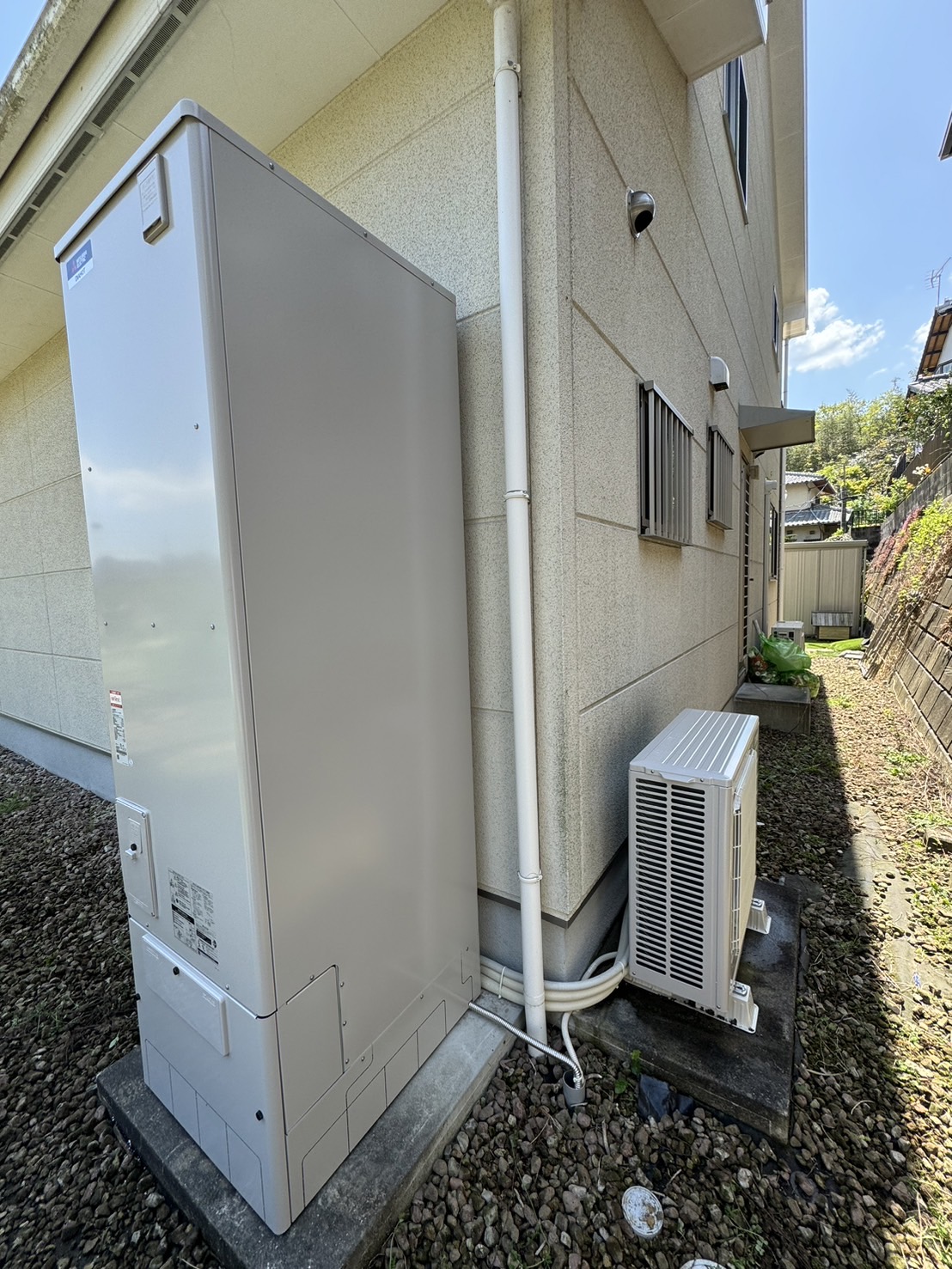 | 商品詳細 | 【施工前】 パナソニック フルオート 370L 自然冷媒 CO2ヒートポンプ式給湯器 貯湯ユニッ:HE-370SGQ ヒートポンプユニット:HE-45PSG 【施工後】 三菱 フルオート 460L 自然冷媒 CO2ヒートポンプ式給湯器 貯湯ユニット:SRT-S466U ヒートポンプユニット:SRT-MU516-S |