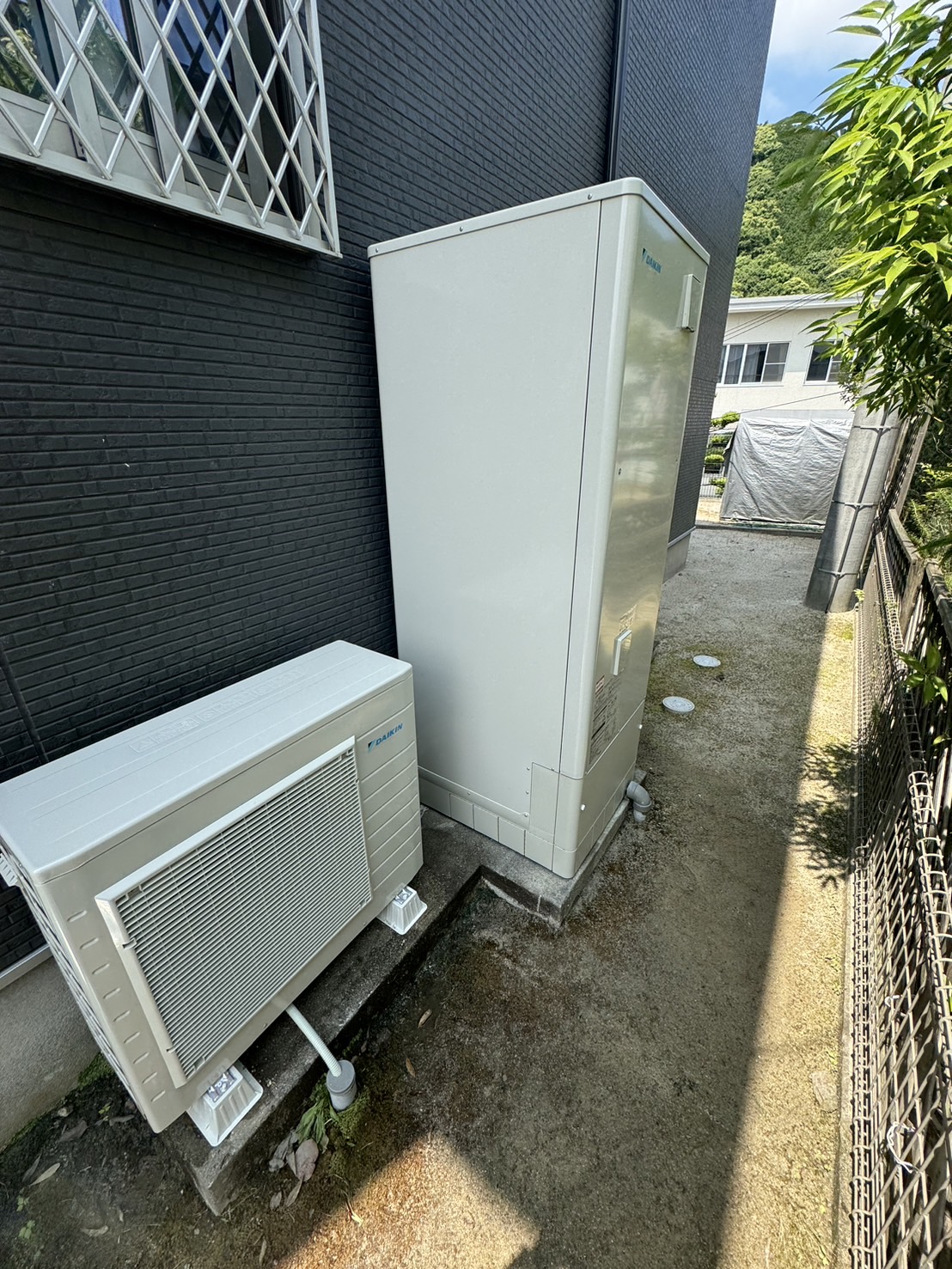 | 商品詳細 | 【施工前】 東芝 フルオート 370L 自然冷媒 CO2ヒートポンプ式給湯器 貯湯ユニット:HWH-FB370CT ヒートポンプユニット:HWH-450CU 【施工後】 ダイキン フルオート 370L エコキュート 貯湯ユニット:EQX37XFV ヒートポンプユニット:RQWX45XV |