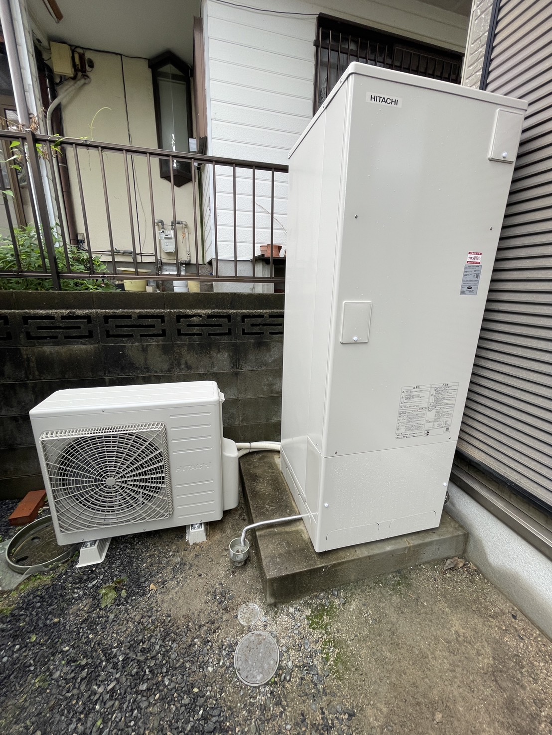 | 商品詳細 | 【施工前】 セキスイの電気温水器 フルオート 370 貯湯ユニット:AUF-37M3K ヒートポンプユニット:なし 【施工後】 日立のエコキュート フルオート 370 エコキュート(ヒートポンプ給湯器) 貯湯ユニット:BHP-FN37WU ヒートポンプユニット:BHP-HAD45W |
