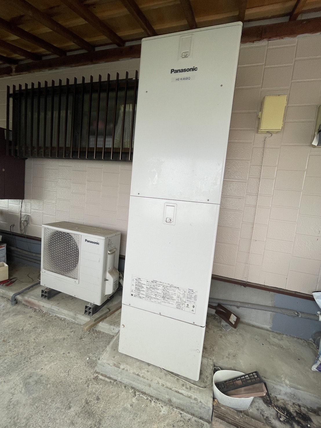 | 商品詳細 | 【施工前】 パナソニックのエコキュート フルオート 460 自然冷媒CO2ヒートポンプ給湯機 貯湯ユニッ: HE-K46BQ ヒートポンプユニット:HE-PK608 【施工後】 パナソニックのエコキュート フルオート 370 エコキュート(ヒートポンプ給湯器) 貯湯ユニット:HE-S37LQS ヒートポンプユニット: HE-PS45L |