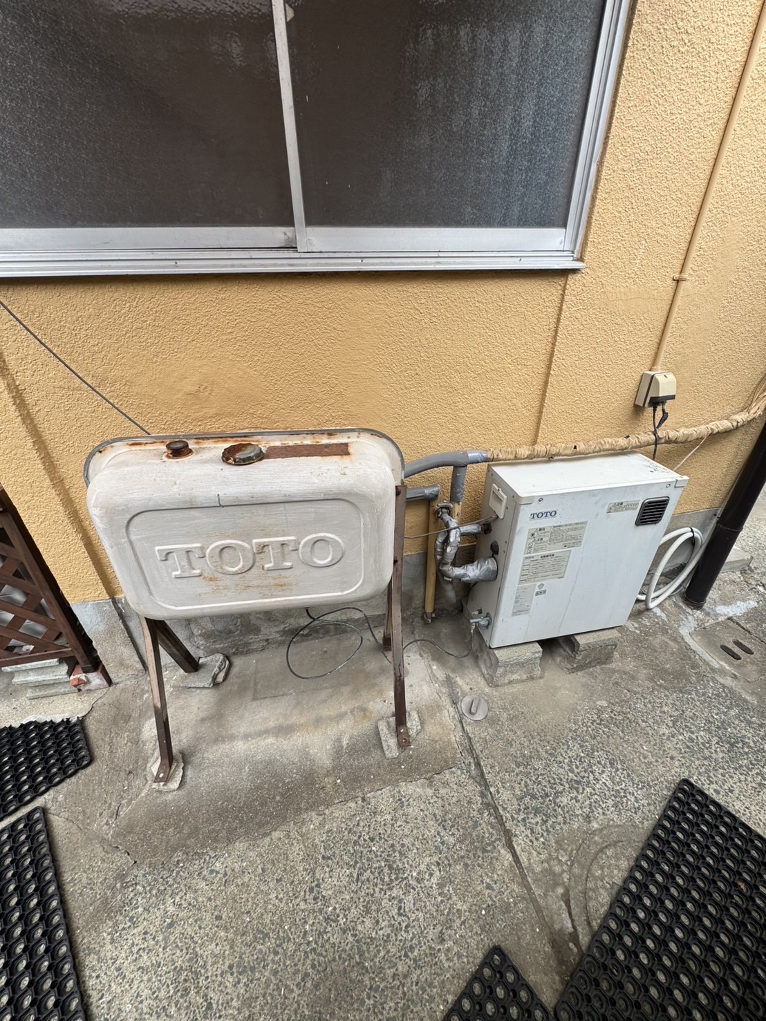 | 商品詳細 | 【施工前】 TOTOの灯油給湯器 貯湯ユニット:RPH43K ヒートポンプユニット: 【施工後】 ダイキンのエコキュート 給湯専用 370 エコキュート(ヒートポンプ給湯器) 貯湯ユニット:EQA46YV ヒートポンプユニット:RQW60ZV |