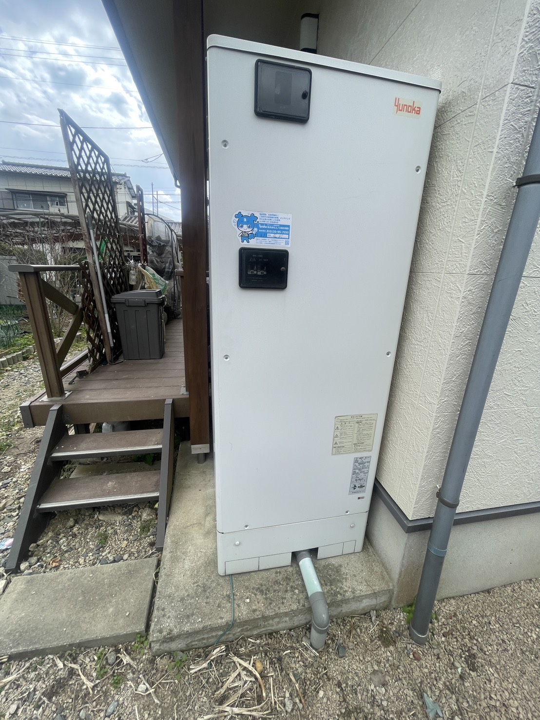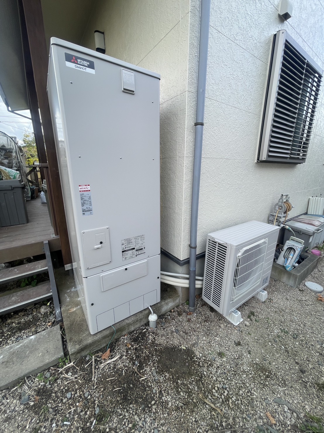 | 商品詳細 | 【施工前】 ユノカの電気温水器 フルオート 460 貯湯ユニット:YU46LBB2-K19 ヒートポンプユニット:なし 【施工後】 三菱のエコキュート セミオート 370 エコキュート(ヒートポンプ給湯器) 貯湯ユニット:SRT-C377 ヒートポンプユニット:SRT-MU417-V |