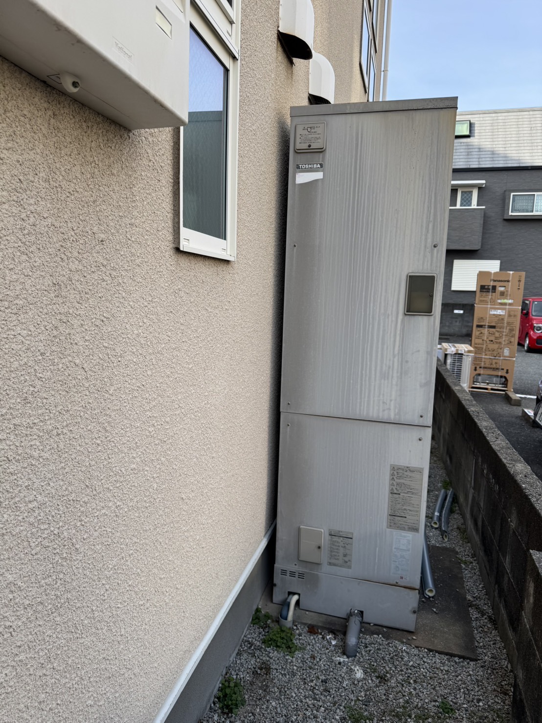 | 商品詳細 | 【施工前】 東芝の電気温水器 フルオート 460 エコキュート(ヒートポンプ給湯器) 貯湯ユニット:HPL-2TFB465SRAU ヒートポンプユニット:なし 【施工後】 パナソニックのエコキュート フルオート 370 エコキュート(ヒートポンプ給湯器) 貯湯ユニット:HE-S37LQS ヒートポンプユニット:HE-PS45L |