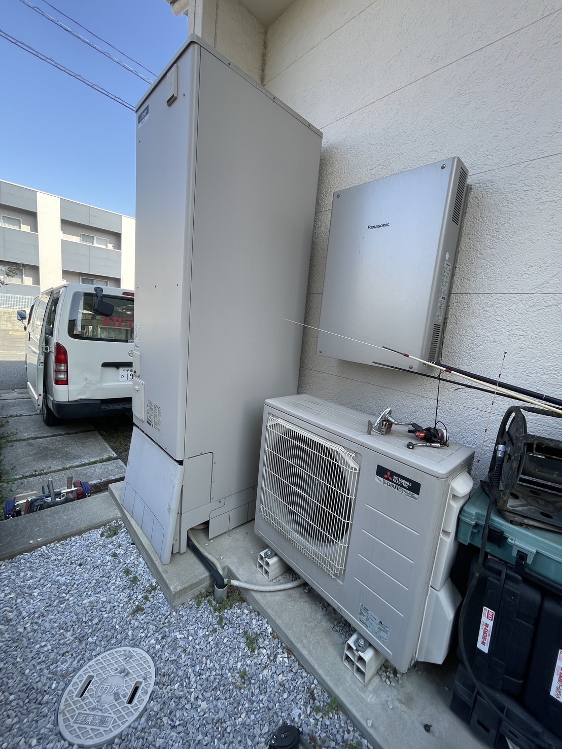 | 商品詳細 | 【施工前】 三菱のエコキュート フルオート 460 エコキュート(ヒートポンプ給湯器) 貯湯ユニット:SRT-WT46 ヒートポンプユニット:SRT-MU60-L 【施工後】 パナソニックのエコキュート フルオート 460 エコキュート(ヒートポンプ給湯器) 貯湯ユニット:HE-S46LQS ヒートポンプユニット: HE-PS60L |