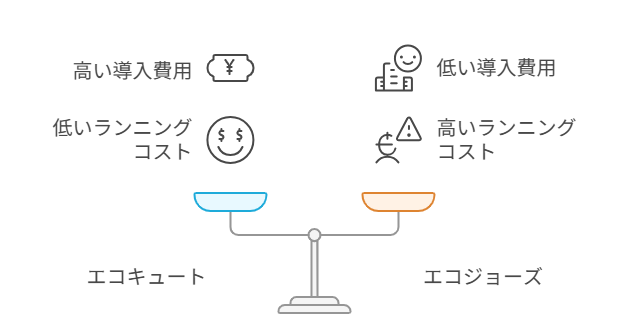 エコキュートとエコジョーズでは、導入費用やランニングコストに違いがあります。