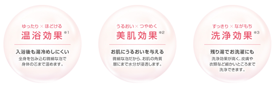 ウルトラファインバブルには、温浴効果・美肌効果・洗浄効果の3つの効果があります。