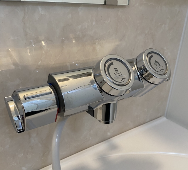 お湯と水を混ぜて適温を調整する「サーモスタット混合栓」が故障している可能性があります。