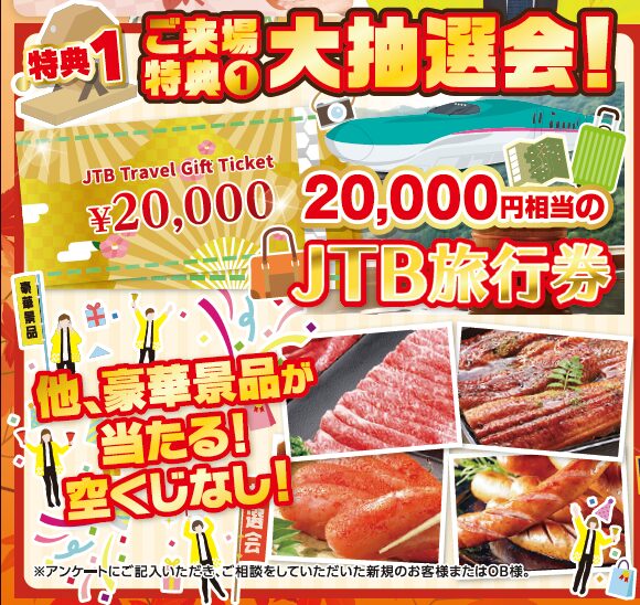 🎁 ご来場特典①:JTB旅行券などが当たる大抽選会!
