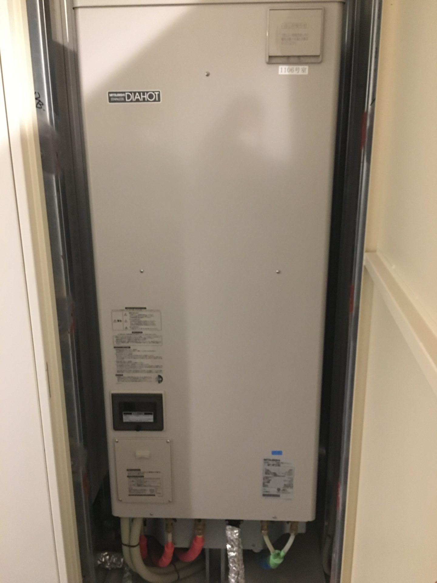 | 施工内容 | こんにちは! エコキュート交換工事と言えば【全国展開中のチカラもち】で有名な チカラもち 広島店です。 本日は広島県広島市南区宇品西のお客様からご依頼を頂き エコキュート 三菱電機株式会社から エコキュート 三菱電機株式会社 SRT-S375Aへ お取り替えをさせていただきました。 今回の現場はマンションで、マンションに設置されているエコキュートは本体が玄関横の扉の中、ヒートポンプ(室外機)がベランダというパターンが多く、今回もそのパターンでした。 マンション自体に傷や汚れがつかない様に養生をするのはもちろんですが、ヒートポンプを搬出する際も傷や汚れがつかない様に家の中にも養生をします。 これは戸建の場合にも家の中を通る場合は行います。 水漏れや傷、汚れ等に細心の注意を払い作業を行いますのでご安心して【チカラもち広島店】でエコキュートの交換をしていただければと思います。 【チカラもち広島店】では多くお客様からのお問い合わせをスタッフ一同、心よりお待ちしております。 これからも【チカラもち広島店】をどうぞ宜しくお願い致します。 【お問い合わせ 0120-841-439】 |