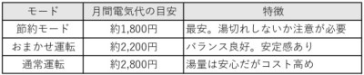 お湯を必要最低限だけ沸き上げ、徹底して節電を目指すモード。