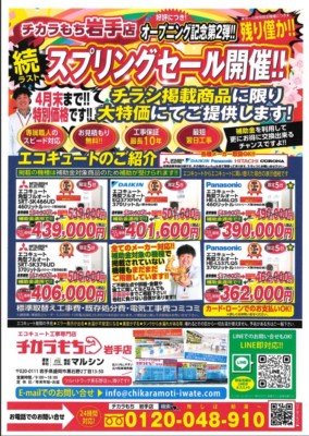 今回のチラシは補助金を引いた金額で載せているので、さらにイメージしやすいかとおもいます!
