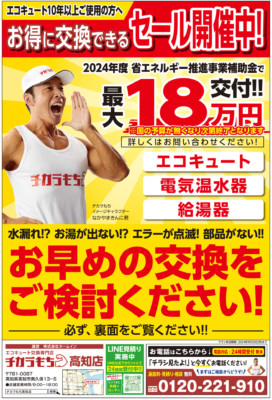 高知県でエコキュートの交換ならチカラもち高知店にお気軽にお問い合わせ下さい。