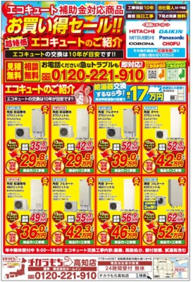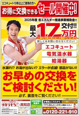 高知市・南国市でエコキュートの交換ならチカラもち高知店にお気軽にお問い合わせ下さい