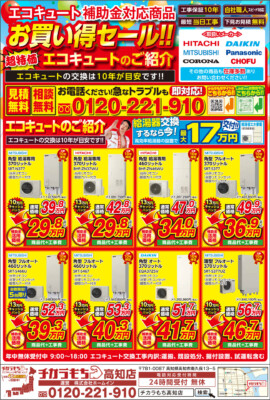 エコキュート交換工事なら「チカラもち高知店」へ!!