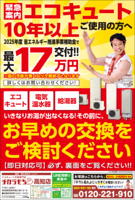 高知市・南国市でエコキュートの交換ならチカラもち高知店にお気軽にお問い合わせ下さい!