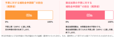 また補助対象となる給湯器の設置に合わせて、既存住宅のリフォーム工事で電気蓄熱暖房機または電気温水器の撤去工事を行う場合、その工事に応じた定額が加算される「撤去加算」については、別枠の予算32億円に対し同じく本日時点で82%が申請済みとなっています。こちらは特に早いペースで申請が完了しています😮