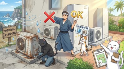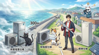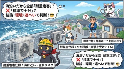 耐塩害仕様が必要かどうかは「家の住所」ではなく「室外機の置き場所」で決まる