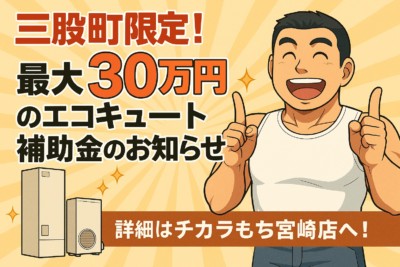 環境にやさしく、光熱費の節約にもなる給湯器「エコキュート」。 このたび三股町では、再生可能エネルギーの導入を促進するために、最大30万円の補助金が受け取れる制度がスタートします!