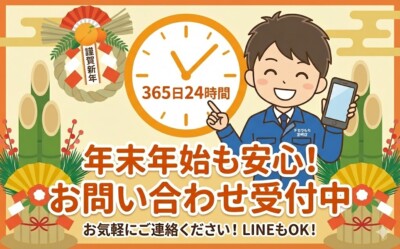 当店では、年末年始の期間中も変わらず、 【365日24時間】お問い合わせを受付中です!