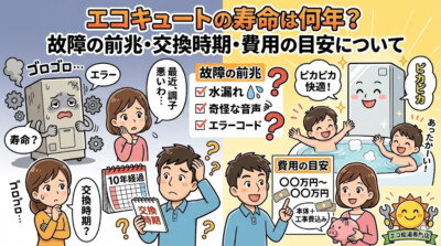 今回は、エコキュートの寿命や故障のサイン、交換のタイミングまで、わかりやすくまとめました。