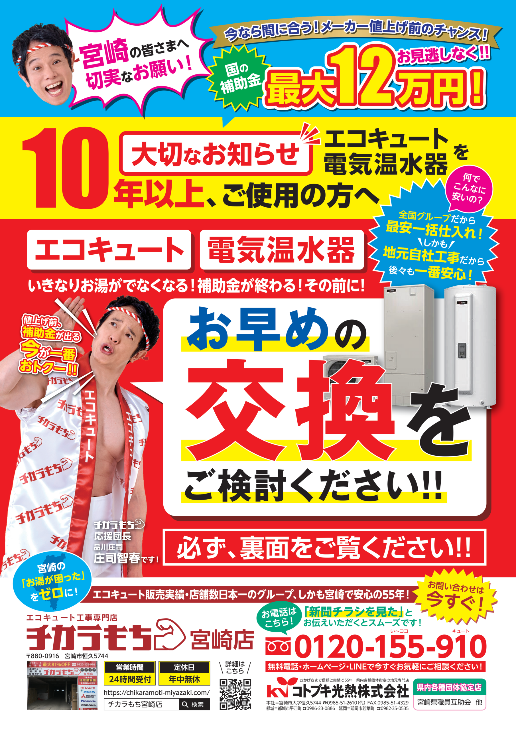 こんにちは!チカラもち宮崎店です😊 今回は、最新のエコキュートチラシを公開しました✨ 補助金特別セール先着受付 の情報を、わかりやすくまとめています!