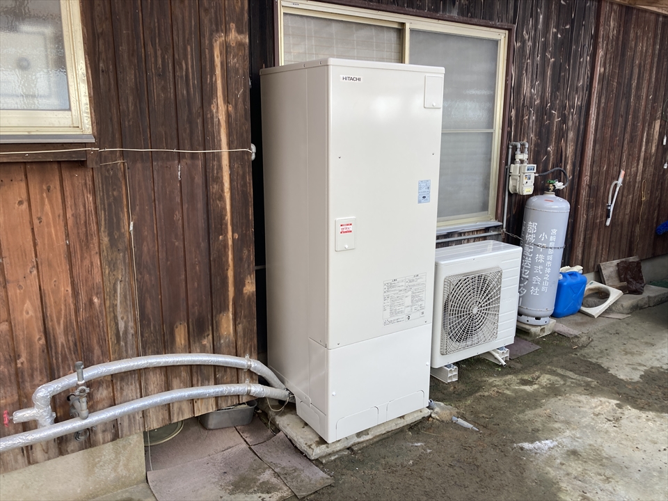 三股町宮村にて、補助金を使ってオトクに最新エコキュートに交換!(日立BHP-ZN37WU)|高機能な給湯専用タイプ
