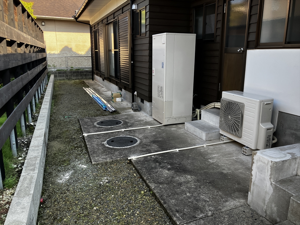 【都城市蓑原町】エコキュート交換工事 3年前のガス給湯器→日立BHP-FN37WU(フルオートタイプ)