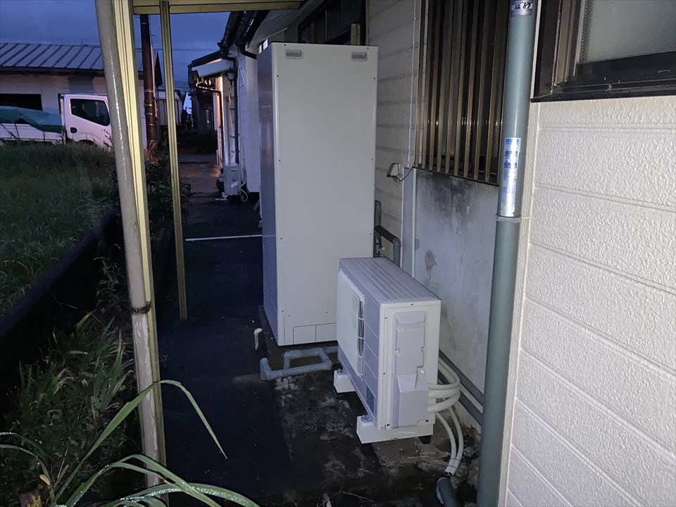 都城市下長飯町にて【エコキュート交換工事】※15年前の電気温水器→「三菱SRT-W376」(フルオートタイプ)