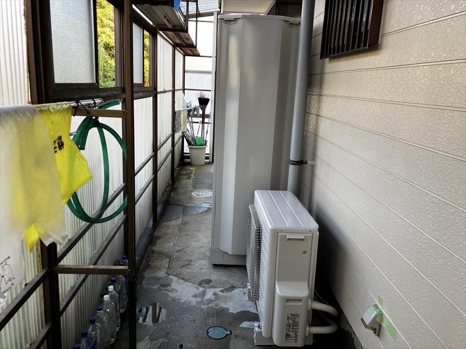 宮崎市大塚町にて【エコキュート交換工事】※24年前の電気温水器→「日立BHP-ZN46WU」(給湯専用タイプ)