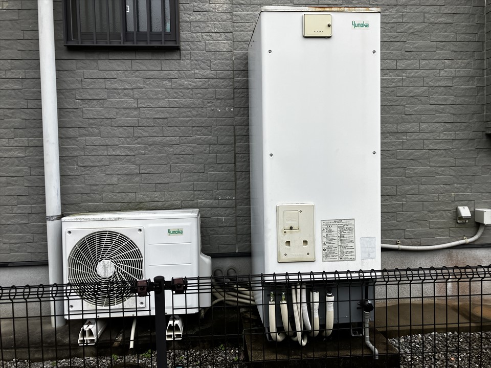 | 商品詳細 | 施工前:ユノカ YTK37NB10(給湯専用/2012年製) 施工後:ダイキン EQN46WV(給湯専用) |
