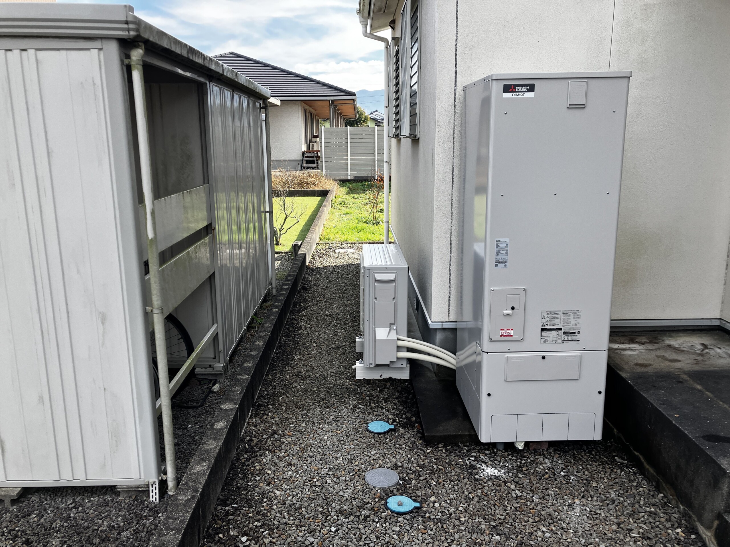 都城市安久町にて【エコキュート交換工事】※16年前の電気温水器→「三菱SRT-C377」(セミオートタイプ)