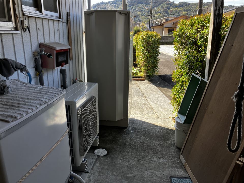 日南市中平野にて【エコキュート交換工事】※製造年不明のガス給湯器→「日立BHP-ZA37WU」(給湯専用タイプ)