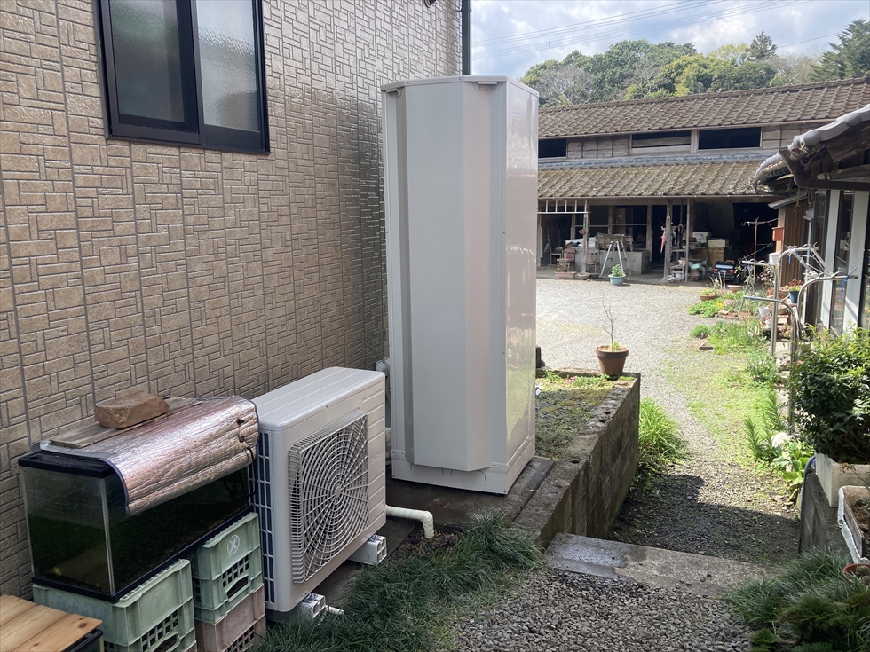 小林市細野にて【エコキュート交換工事】※20年前の電気温水器→「日立BHP-ZN46WU」(給湯専用タイプ)