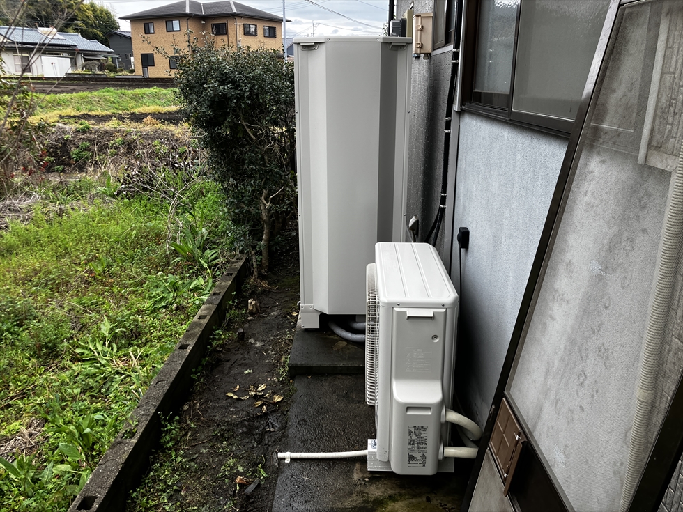 小林市堤にて【エコキュート交換工事】※14年前のエコキュート→「日立BHP-ZA37WU」(給湯専用タイプ)