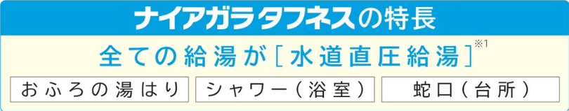 勢いが弱くなるのはタンク内の水圧が低いことが原因ですが、この方式であれば瞬間的にお湯を沸かしながら直接給湯できるので、水圧を気にすることなく利用できるのが特徴です。