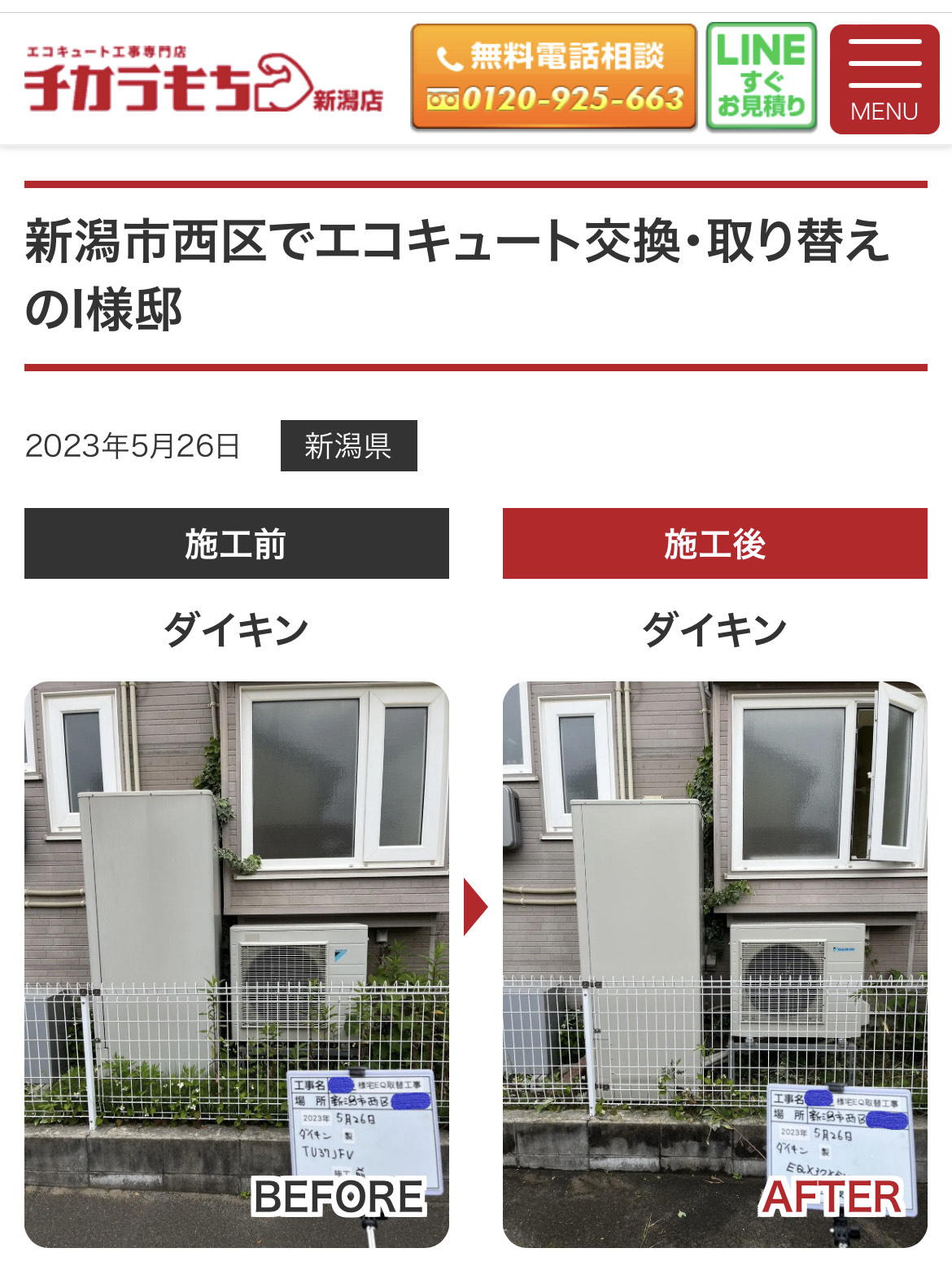 新潟市西区にお住まいのお客様で、新築時に設置したエコキュートが約14年経過しており、昨年の冬にはエラーが連発され修理業者さんに2回も修理の依頼をされていた方です!