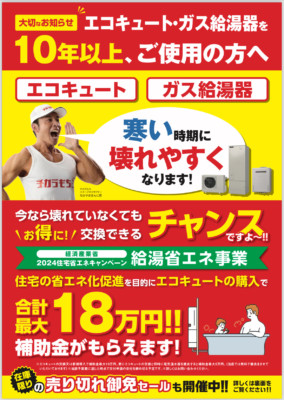 新潟県全域で「エコキュート買い替え補助金」にチカラもち新潟店はバッチリ対応しております!