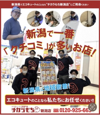 「チカラもち新潟店」は、エコキュート専門の工事店として新潟県内でクチコミ件数がダントツのNo.1です。