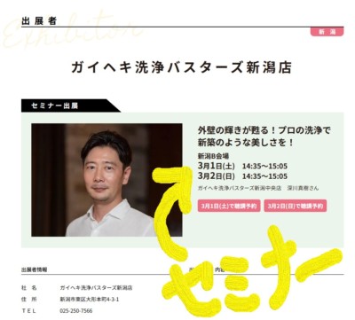 さらに、外壁洗浄・外壁クリーニングの「ガイヘキ洗浄バスターズ新潟中央店」も同ブースに出展いたします!