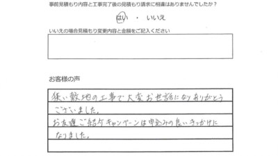 狭い敷地の工事で大変お世話になり