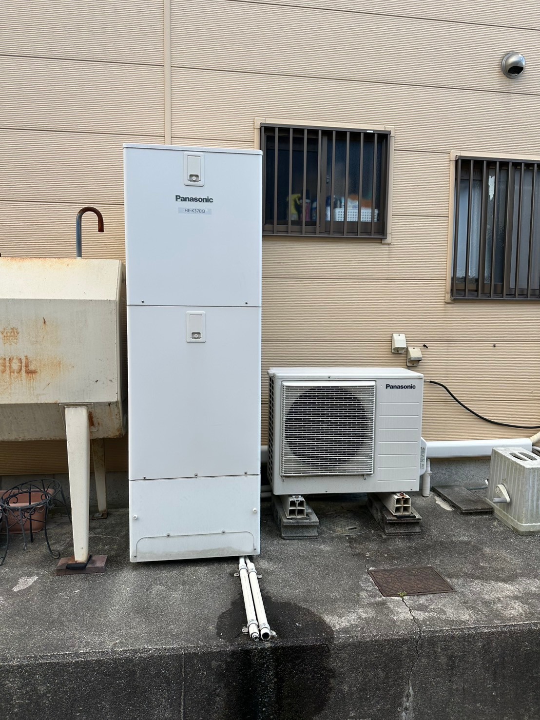 | 商品詳細 | 施工前】 パナソニック フルオート 370L 自然冷媒 CO2ヒートポンプ給湯機 システム:HE-K37BQS 貯湯ユニット:HE-K37BQ ヒートポンプユニット:CWQPK45GE 【施工後】 パナソニック フルオート 370L 自然冷媒 CO2ヒートポンプ給湯機 システム:HE-S37LQS 貯湯ユニット:HE-S37LQ ヒートポンプユニット:HE-PS45L |