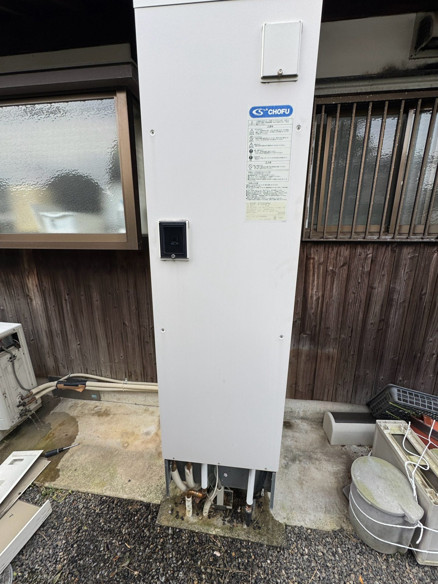 | 商品詳細 | 【施工前】 長府 2006年製 スリム型給湯専用 370L 自然冷媒 CO2ヒートポンプ給湯機 システム:EHP-3733GPH 貯湯ユニット:ET-3733GPH ヒートポンプユニット:EHPE-455 【施工後】 日立 角型給湯専用 370L 自然冷媒 CO2ヒートポンプ給湯機 システム:BHP-ZN37WU 貯湯ユニット:BHP-TAZN37W ヒートポンプユニット:BHP-HAD45W |