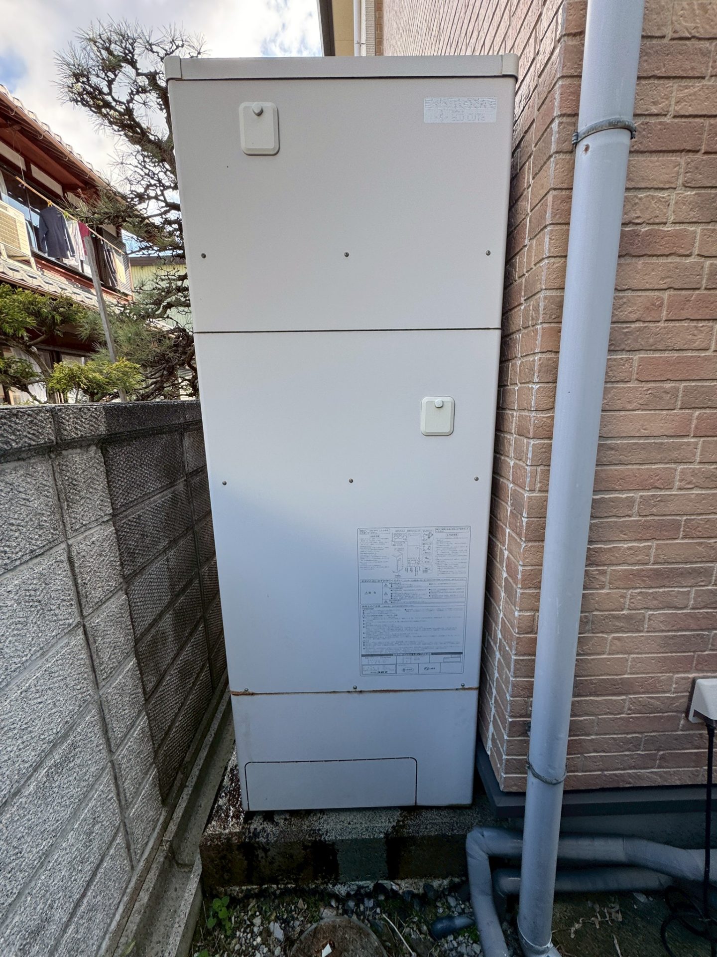 | 商品詳細 | 【施工前】 コロナ 2006年製 角型フルオート 460L 自然冷媒 CO2ヒートポンプ給湯機 システム:CHP-461NA6 貯湯ユニット:CTU-461NA6 ヒートポンプユニット:CHP-N606A 【施工後】 三菱 角型フルオート 460L 自然冷媒 CO2ヒートポンプ給湯機 システム:SRT-S466U 貯湯ユニット:SRT-ST466U ヒートポンプユニット:SRT-MU516-S |