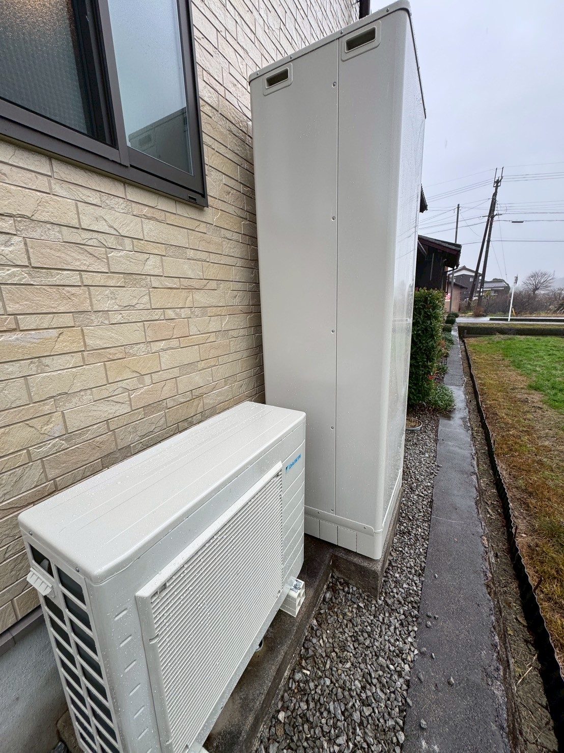 | 施工内容 | こんにちは♪ 【滋賀県でエコキュート / 電気温水器の交換をするならチカラもち滋賀店にお任せください】 「チカラもち」は全国46都道府県で展開中のエコキュート交換工事専門店です。 豊富な施工実績を基に、ご納得いただける工事内容を提案させていただきます。 お風呂のお湯がでない・洗面所のお湯がでない・キッチンのお湯がでない・リモコンがつかない・リモコンが壊れた・水漏れしているなどなど、、、、 ヒートポンプ給湯器(エコキュート)や電気温水器の急な不具合の際には私たち「チカラもち滋賀店」がいち早く駆け付け、最適な交換工事プランをご提案します。 【給湯省エネ2026事業補助金】にも対応しております! 経済産業省 資源エネルギー庁が実施する補助金を活用し、お得に賢くお買い換えをしましょう。 めんどうな申請も我々にお任せください。 -+-+-+-+-+-+-+-+-+-+-+-+-+-+-+-+-+-+-+-+-+-+-+-+-+-+-+-+-+-+-+-+-+-+-+-+-+-+-+-+-+-+-+-+-+-+-+-+-+-+-+-+-+-+-+-+-+-+-+-+-+-+-+-+ 今回は、滋賀県長浜市でダイキン製スリム型エコキュートから同じくダイキン製角型エコキュートへの交換工事をさせていただきました。 エコキュートの調子が悪いとご相談の連絡をいただき、当日中にご自宅に訪問しました。 すると、ダイキン製の「スリム型」エコキュートが設置されていました。 この「スリム型」とは、当時のダイキン製品に見られる特徴的な形状のエコキュートで、現在この規格は長府製作所のエコキュートでのみ採用されています。 同じくダイキンの製品に交換するにしても、貯湯タンクのサイズ感が変わるため、注意が必要です。 貯湯タンク設置用の基礎が十分な面積を持っているかを測り、問題無いと判断しました。 その場で金額のご提示をさせていただき、2日後の工事でご契約をいただきました。 工事当日はあいにくのお天気でしたが、問題なく工事を完了させることができました。 また、2025年補助金は予算の問題から正直、営業の私もあきらめており、お客様には2026年度補助金の利用を提案しておりましたが、工事完了時点で予算の1%分だけ残っておりましたので何とか滑り込みで補助金も申請できました。ラッキーです。 お客様にもお喜びいただけたのではないでしょうか。 +-+-+-+-+-+-+-+-+-+-+-+-+-+-+-+-+-+-+-+-+-+-+-+-+-+-+-+-+-+-+-+-+-+-+-+-+-+-+-+-+-+-+-+-+-+-+-+-+-+-+-+-+-+-+-+-+-+-+-+-+-+-+-+- 「チカラもち滋賀店」では親切・丁寧でスピード感のあるお客様対応を心掛け、営業職・事務職・施工職が一心となって滋賀県全域のお客様のお役に立ちたいと考えております。 滋賀県でエコキュート・電気温水器の交換専門店をお探しなら「チカラもち滋賀店」までお電話ください♪ ☎ 0120-526-330 ガス給湯器や石油給湯器からエコキュートへの交換も承っております。 |