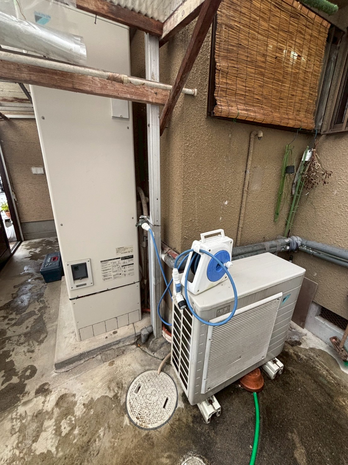 | 施工内容 | こんにちは♪ 【滋賀県でエコキュート / 電気温水器の交換をするならチカラもち滋賀店にお任せください】 「チカラもち」は全国46都道府県で展開中のエコキュート交換工事専門店です。 豊富な施工実績を基に、ご納得いただける工事内容を提案させていただきます。 お風呂のお湯がでない・洗面所のお湯がでない・キッチンのお湯がでない・リモコンがつかない・リモコンが壊れた・水漏れしているなどなど、、、、 ヒートポンプ給湯器(エコキュート)や電気温水器の急な不具合の際には私たち「チカラもち滋賀店」がいち早く駆け付け、最適な交換工事プランをご提案します。 【給湯省エネ2026事業補助金】にも対応しております! 経済産業省 資源エネルギー庁が実施する補助金を活用し、お得に賢くお買い換えをしましょう。 めんどうな申請も我々にお任せください。 -+-+-+-+-+-+-+-+-+-+-+-+-+-+-+-+-+-+-+-+-+-+-+-+-+-+-+-+-+-+-+-+-+-+-+-+-+-+-+-+-+-+-+-+-+-+-+-+-+-+-+-+-+-+-+-+-+-+-+-+-+-+-+-+ 今回は、滋賀県東近江市でダイキン製スリム型エコキュートからパナソニック製角型エコキュートへの交換工事をさせていただきました。 エコキュートの湯沸かしがうまくできないとのことで、交換検討の連絡をいただきました。 現地に訪問し設置状況の確認をさせいただきました。 設置されていたのはダイキン製のスリム型エコキュートです。 現在、この「スリム型」という規格は長府製作所が唯一製造している規格ですが、通常の角型設置でも問題無いと判断し、パナソニック製角型エコキュートでご提案し、ご契約をいただきました。 施工をするに際して、障害となる物を工事日までにお片付けいただいたことで、スムーズに工事をさせていただくことができました。 年末の雪が降る中での工事でしたが、問題なく完工して一安心です。 チカラもち滋賀店では、雪の中でも元気に工事しております。 寒い時期のエコキュートトラブルは増加傾向にありますので、お困りの方はスピード対応が自慢のチカラもち滋賀店にお問合せください。 +-+-+-+-+-+-+-+-+-+-+-+-+-+-+-+-+-+-+-+-+-+-+-+-+-+-+-+-+-+-+-+-+-+-+-+-+-+-+-+-+-+-+-+-+-+-+-+-+-+-+-+-+-+-+-+-+-+-+-+-+-+-+-+- 「チカラもち滋賀店」では親切・丁寧でスピード感のあるお客様対応を心掛け、営業職・事務職・施工職が一心となって滋賀県全域のお客様のお役に立ちたいと考えております。 滋賀県でエコキュート・電気温水器の交換専門店をお探しなら「チカラもち滋賀店」までお電話ください♪ ☎ 0120-526-330 ガス給湯器や石油給湯器からエコキュートへの交換も承っております。 |