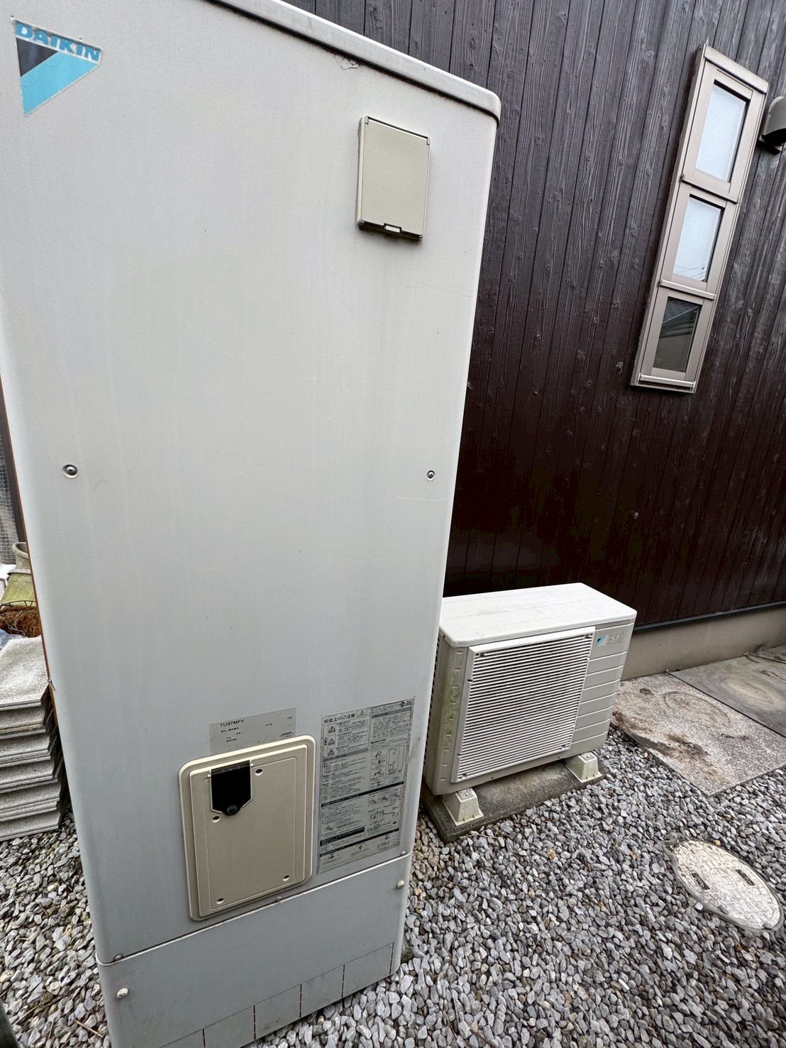 | 商品詳細 | 【施工前】 ダイキン 2011年製 角型フルオート 370L 自然冷媒 CO2ヒートポンプ給湯機 システム:EQ37MFV 貯湯ユニット:TU37MFV ヒートポンプユニット:RQW45MV 【施工後】 三菱 角型フルオート 370L 自然冷媒 CO2ヒートポンプ給湯機 システム:SRT-S467 貯湯ユニット:SRT-ST467 ヒートポンプユニット:SRT-MU517-S |