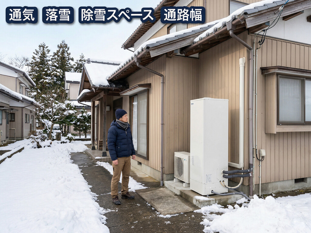 富山県では、朝晩の冷え込み、積雪、落雪、除雪スペースの取り方で、向く機種も注意点も変わってきます。