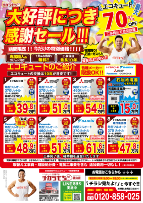 例えば、人気の【HITACHI製エコキュート(370リットルタイプ)】は、39.8万円~と大変お得!その他にも、多くのモデルを取り揃えており、様々なご家庭のニーズに対応いたします。